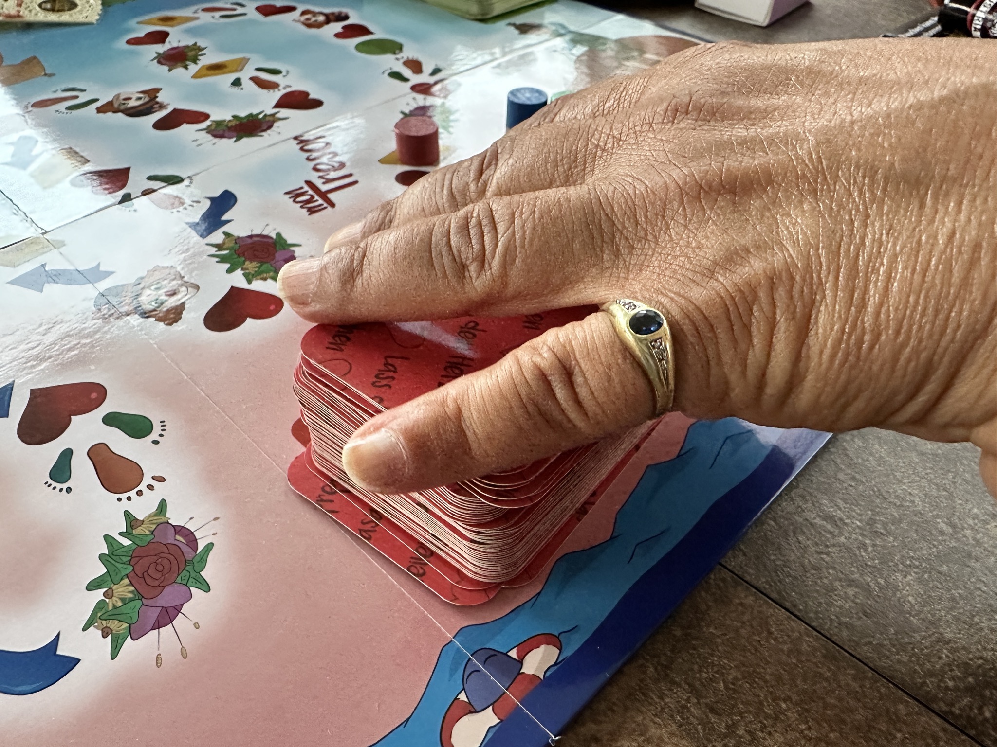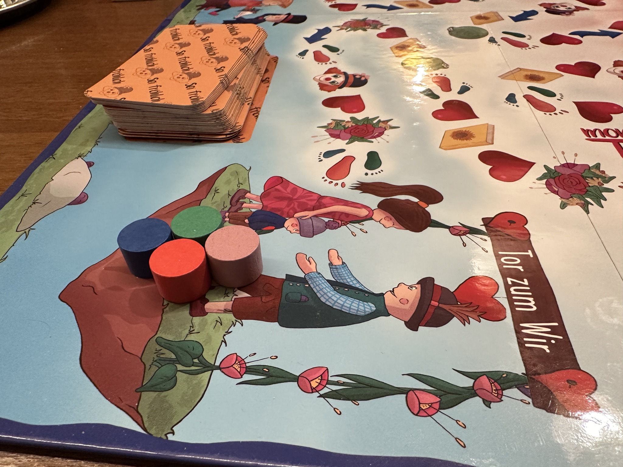 Die Erfahrung aus mehreren Spielen ist, dass jeder Mitspieler die Aufgaben bekommt, die gerade gebraucht werden. Jemand der mehr aus sich herausgehen soll, der darf im Spiel viele Herzens-Fragen beantworten oder die Mitspieler zu unterhalten. Jemand, der eventuell sonst sehr kommunikativ ist, bekommt vielleicht einige 'auf dem Weg' sein Felder - bei denen man sich einfach am Spiel erfreut.