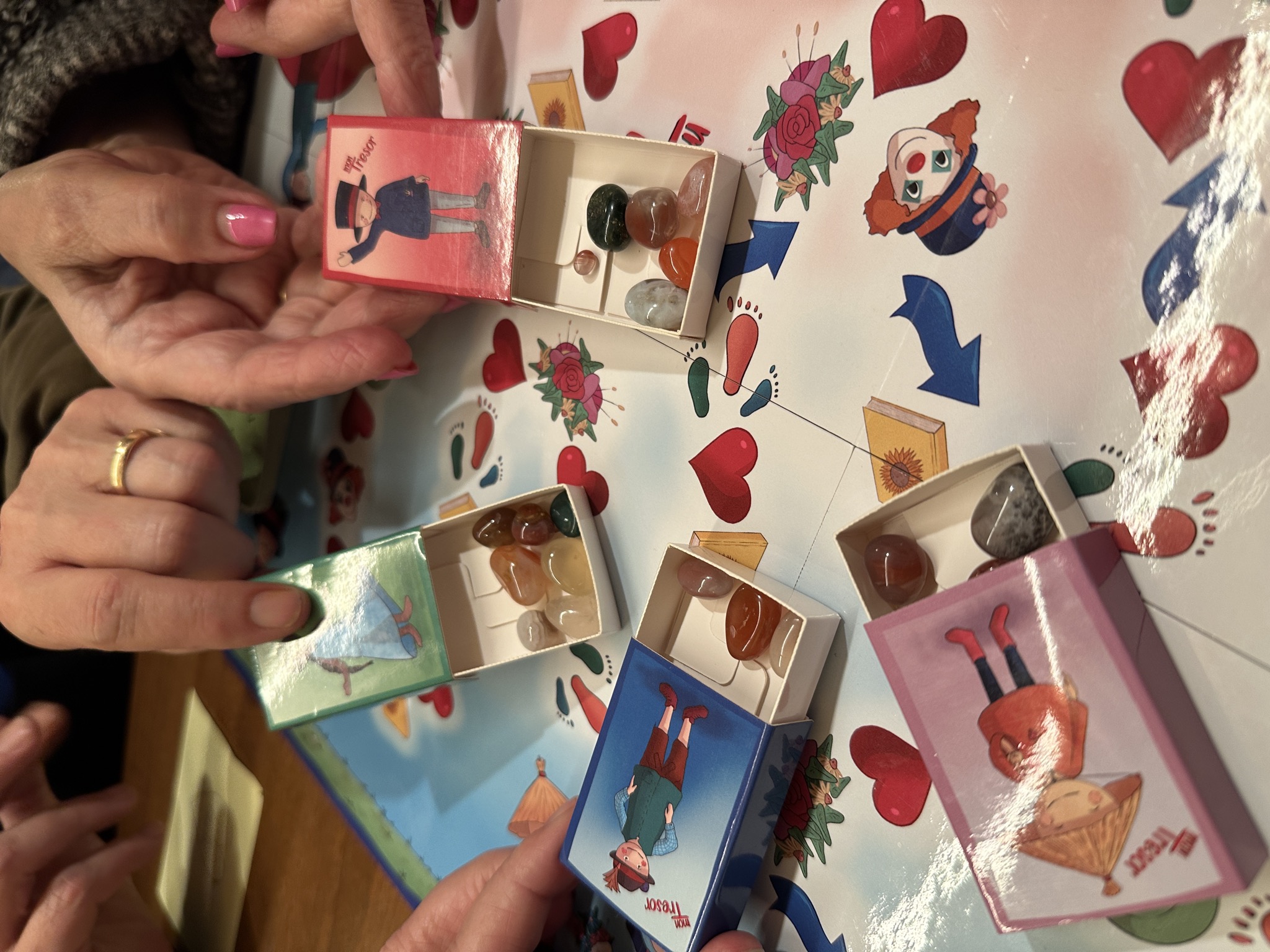 Das Spiel Mon Tresor regt die bis zu sechs Mitspieler zur Kommunikation an. Besonders interessant ist es, wenn Spieler aus verschiedenen Altergruppen zusammen spielen. Neben dem Kennenlernen ergeben sich in diesem Fall auch sehr spannende Diskussionen zu den einzelnen Antworten auf die im Spiel gestellen Aufgaben.