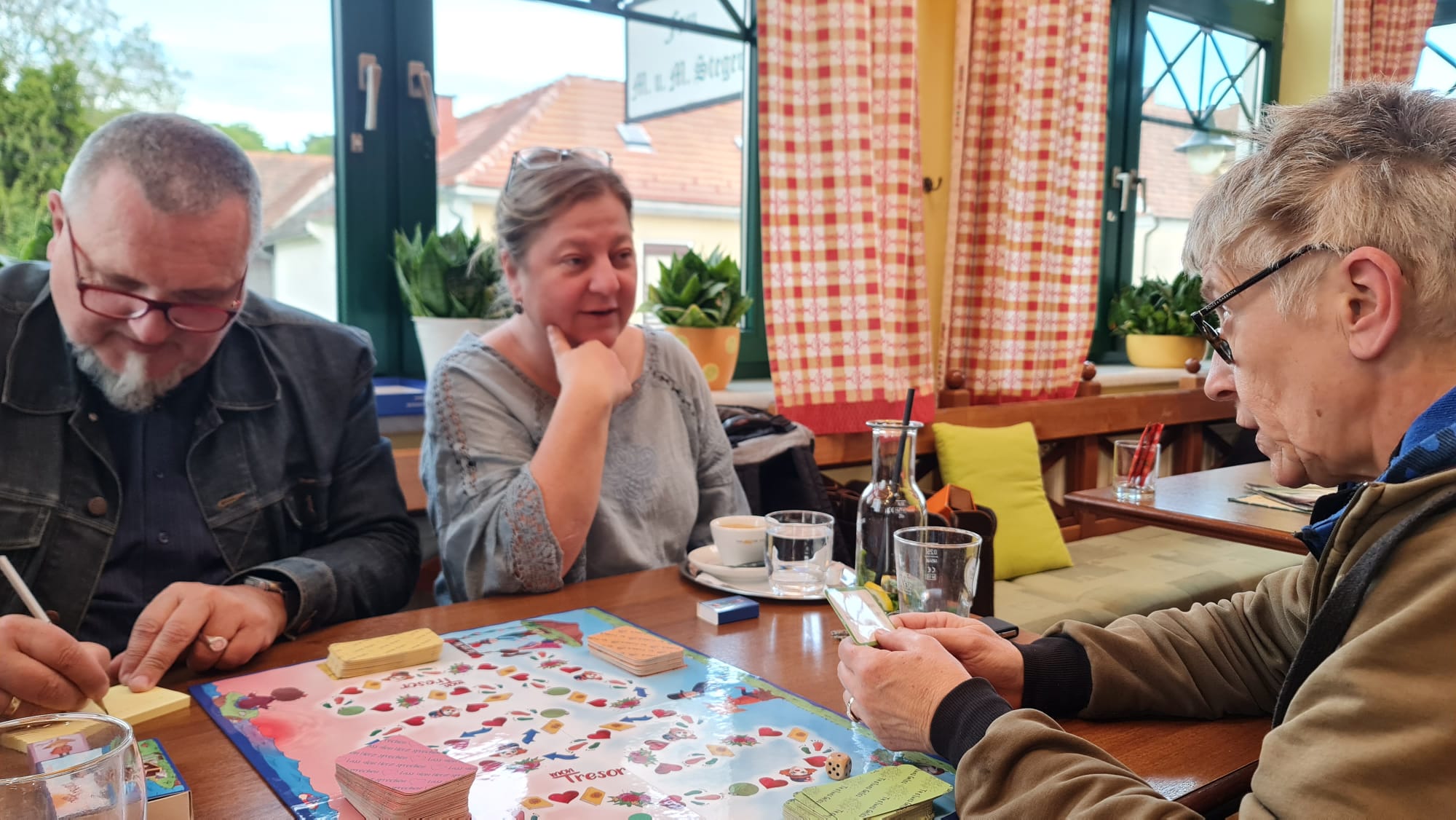 Wir trafen uns mit ein paar Freunden in einem Gasthaus in Riedlingsdorf, um gemeinsam Mon Tresor zu spielen. Dies machten wir einerseits, da einige Freunde interessiert an dem Spiel waren und andererseits, um uns besser kennenzulernen.
